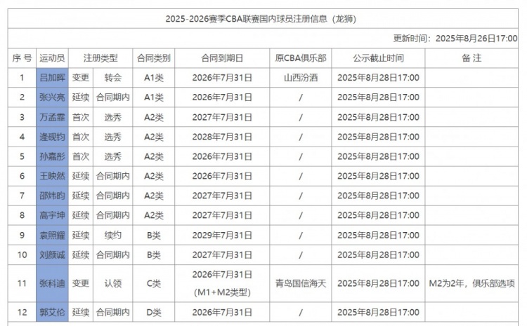 8月26日讯 CBA官网更新了广州男篮新赛季的国内球员注册信息,广州共注册了12人。